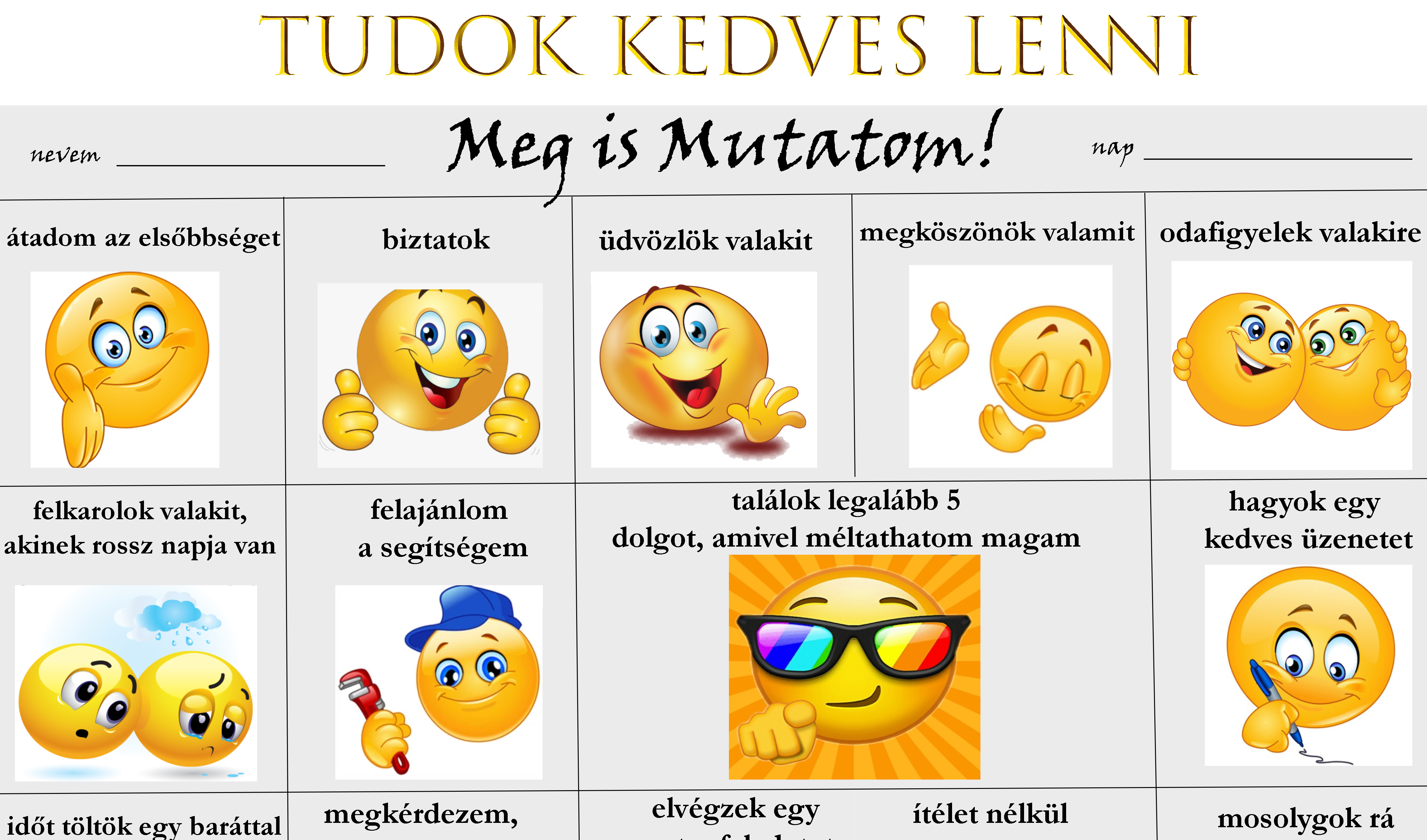A kedvesség megtartó erő! A kedvesség egy kiemelten fontos szociális-érzelmi képesség, amelyre minden embernek szüksége van, hogy boldognak érezhesse magát, és kapcsolódni tudjon másokhoz. A kedvesség rendszeres gyakorlásával és tanításával támogató és biztató légkört hozhatunk létre magunk körül. Gondolj csak egy esetre, amikor kedves voltál valakihez. Mit gondoltál? Mit éreztél?
